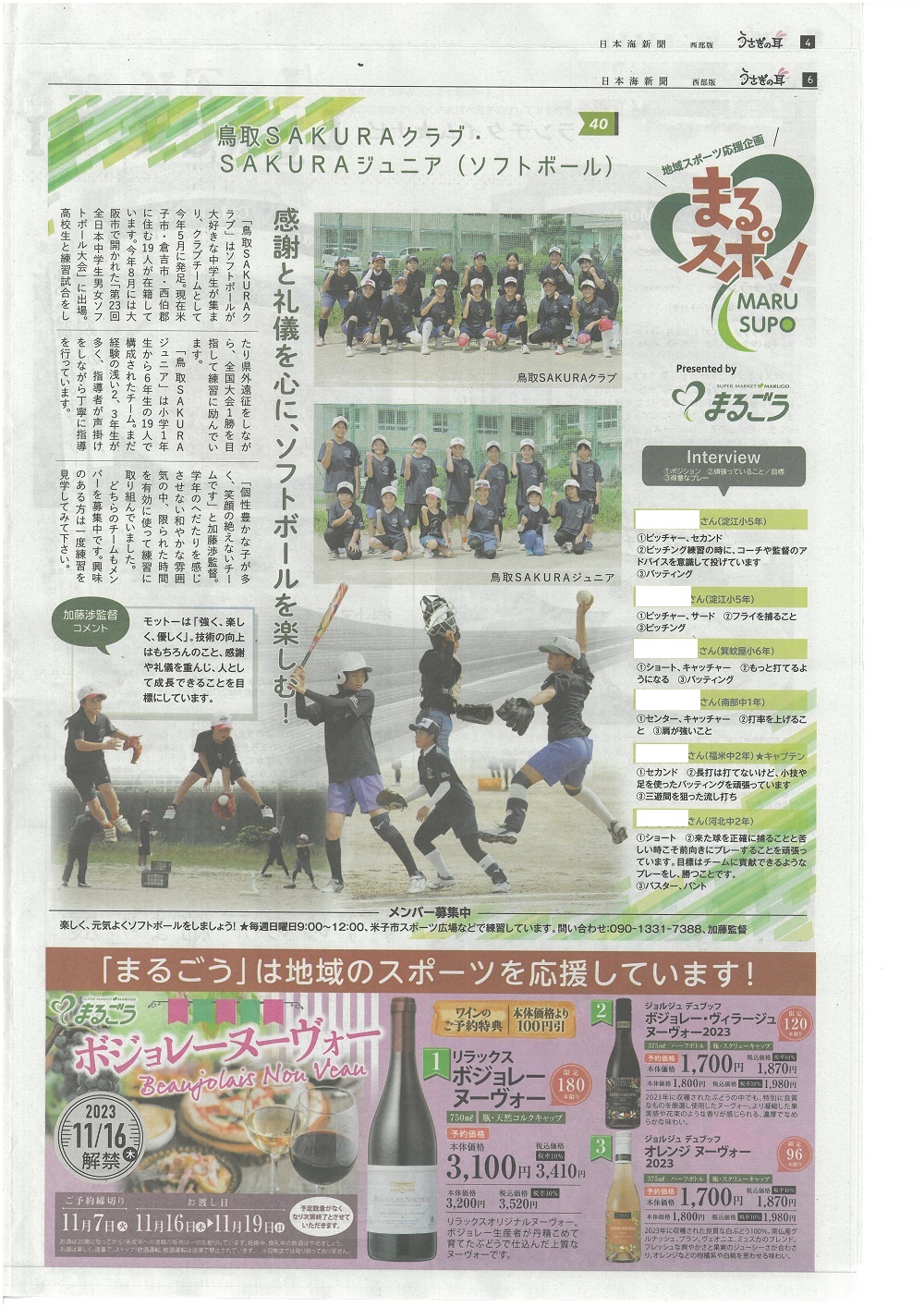 〇日本海新聞西部版情報紙「うさぎの耳」の丸合地域スポーツ応援企画「まるスポ」にクラブの活動が掲載される。【こちらをクリック】